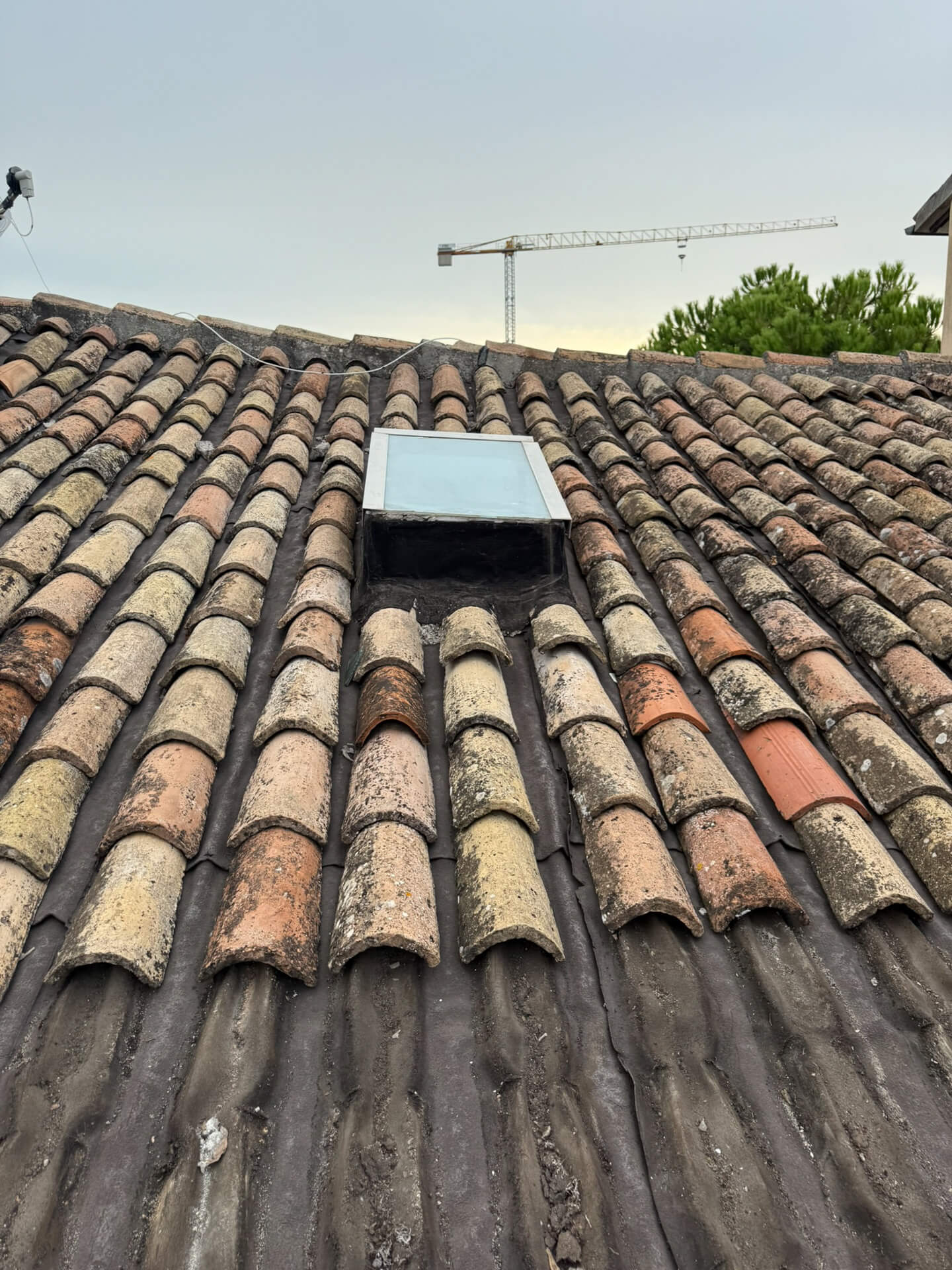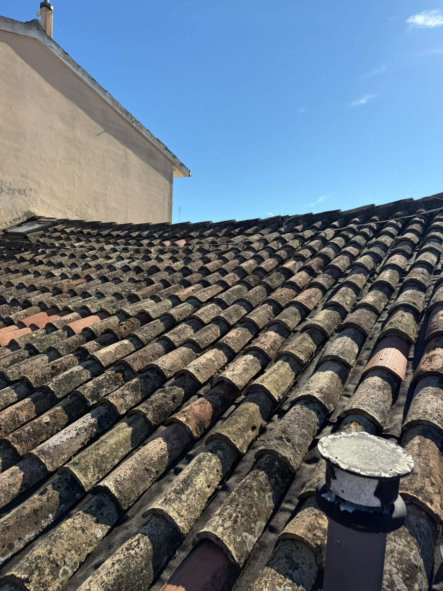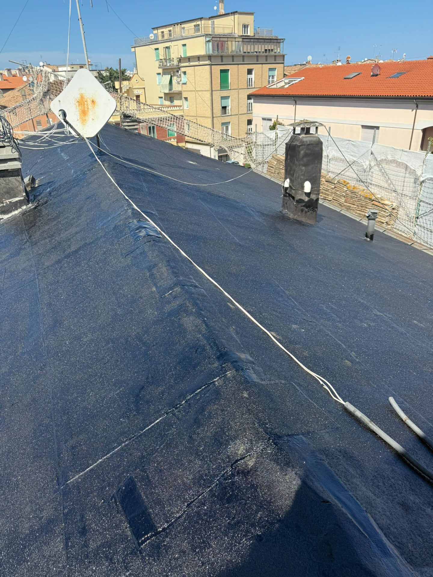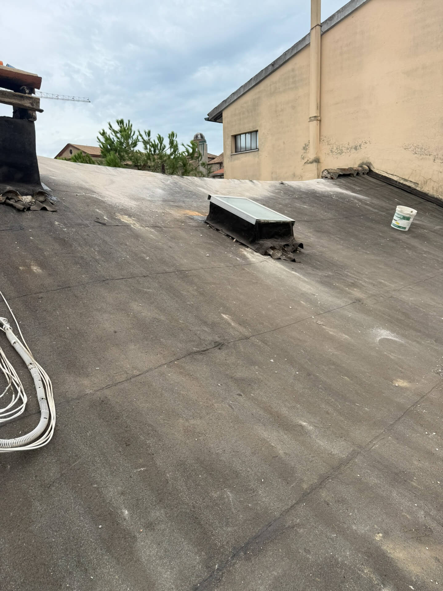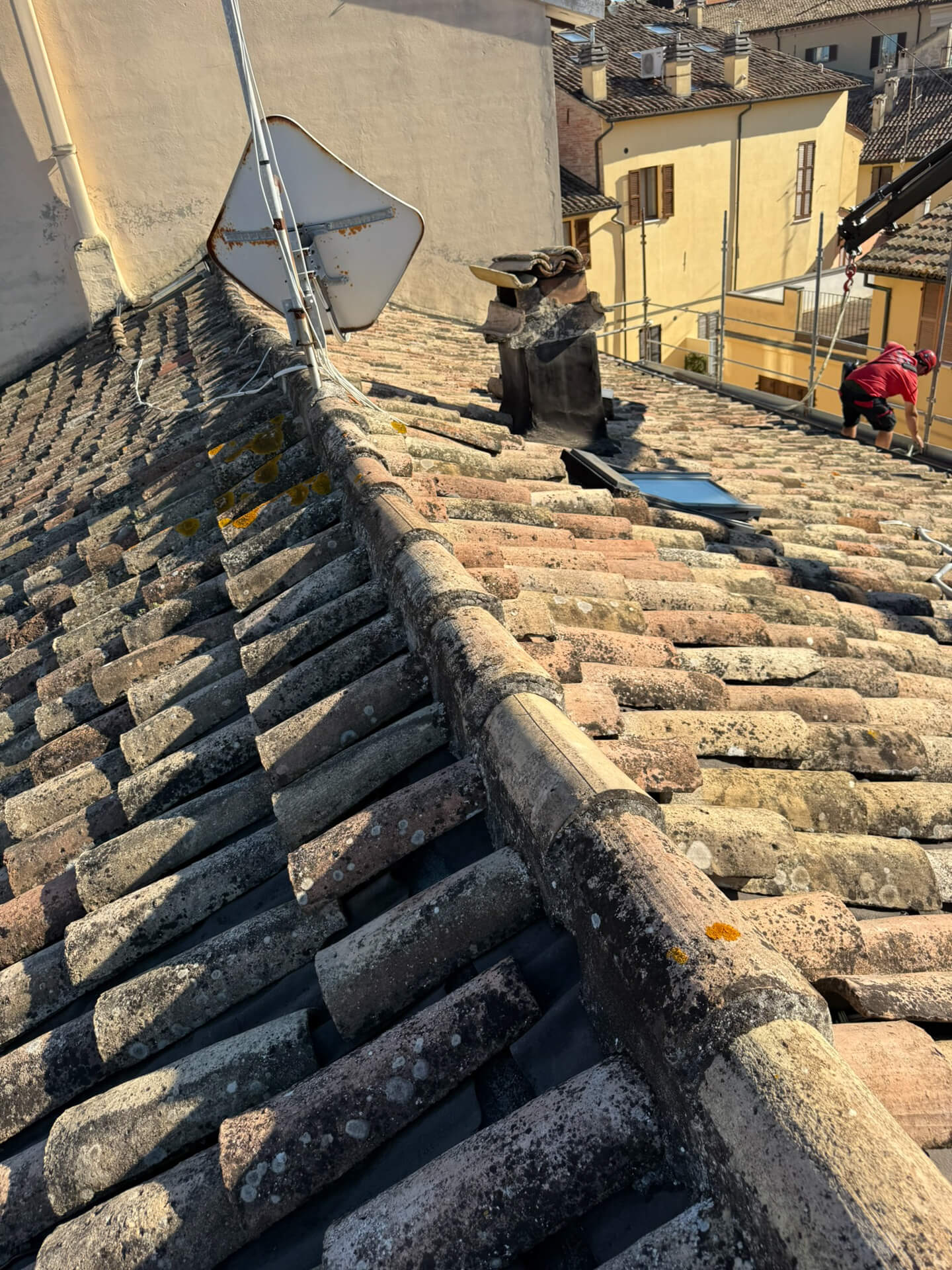 Rifacimento del manto impermeabile e la fornitura e posa di sottocoppo in Ondulina catramata in sostituzione del sottocoppo in coccio per efficientare il peso complessivo sulle travi in legno originarie.