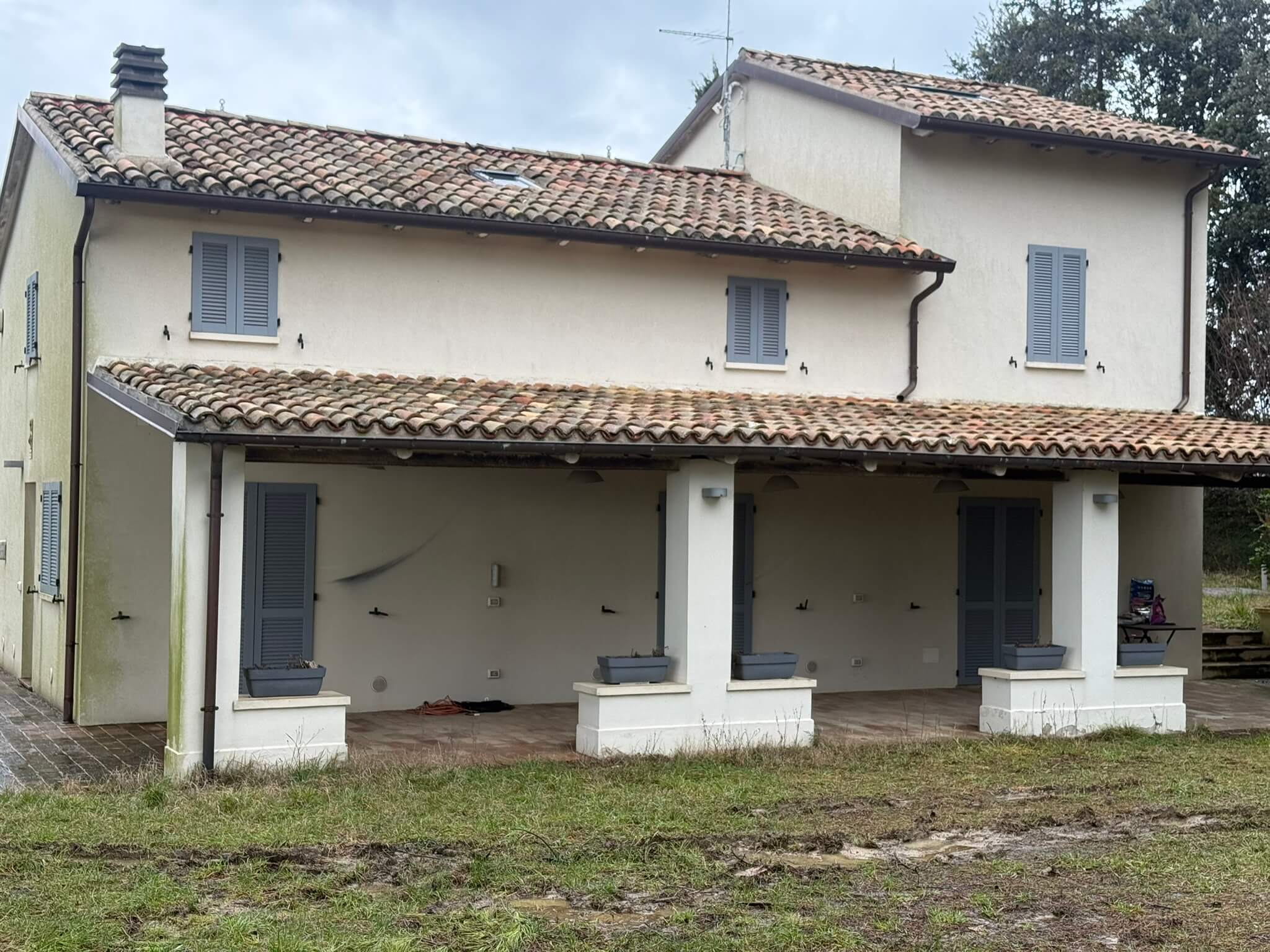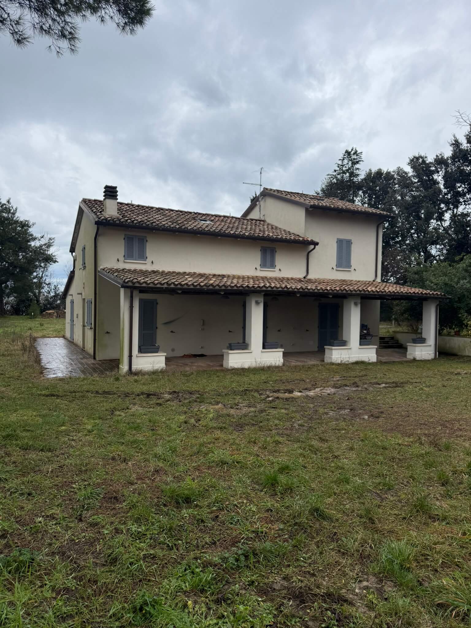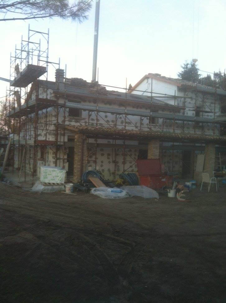 Ristrutturazione totale di un vecchio casolare di campagna mediante nuova sottofondazione, nuove solette in lamiera grecata, adeguamento strutturale in tutte le sue parti compreso cordoli e travi in cemento armato e la sua copertura in legno lamellare.