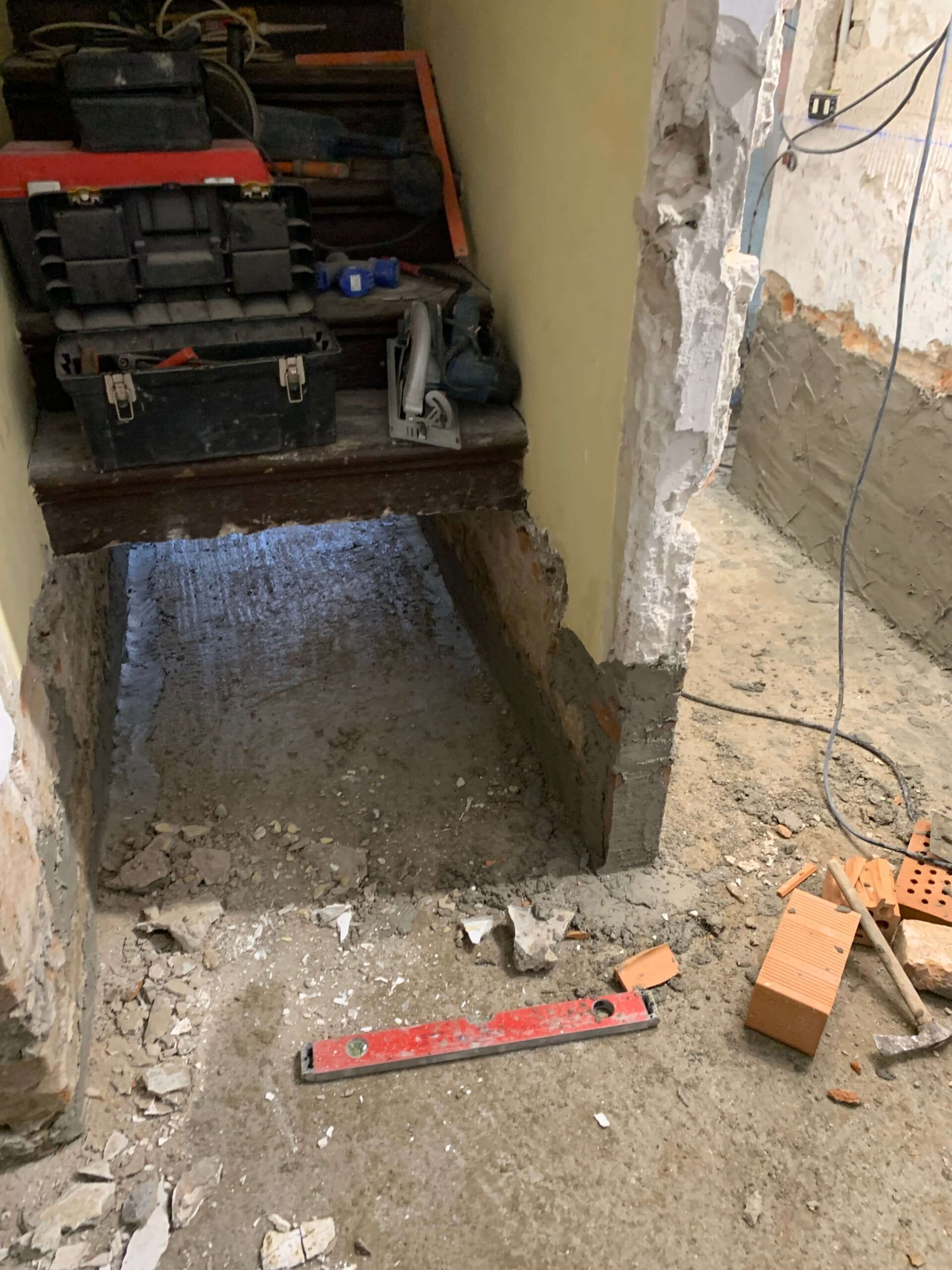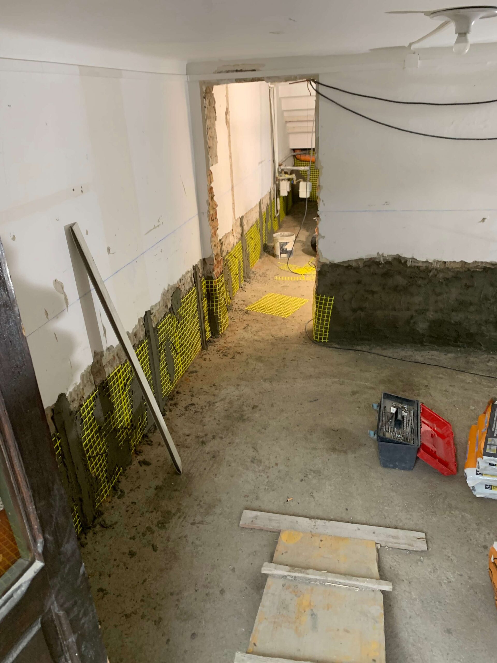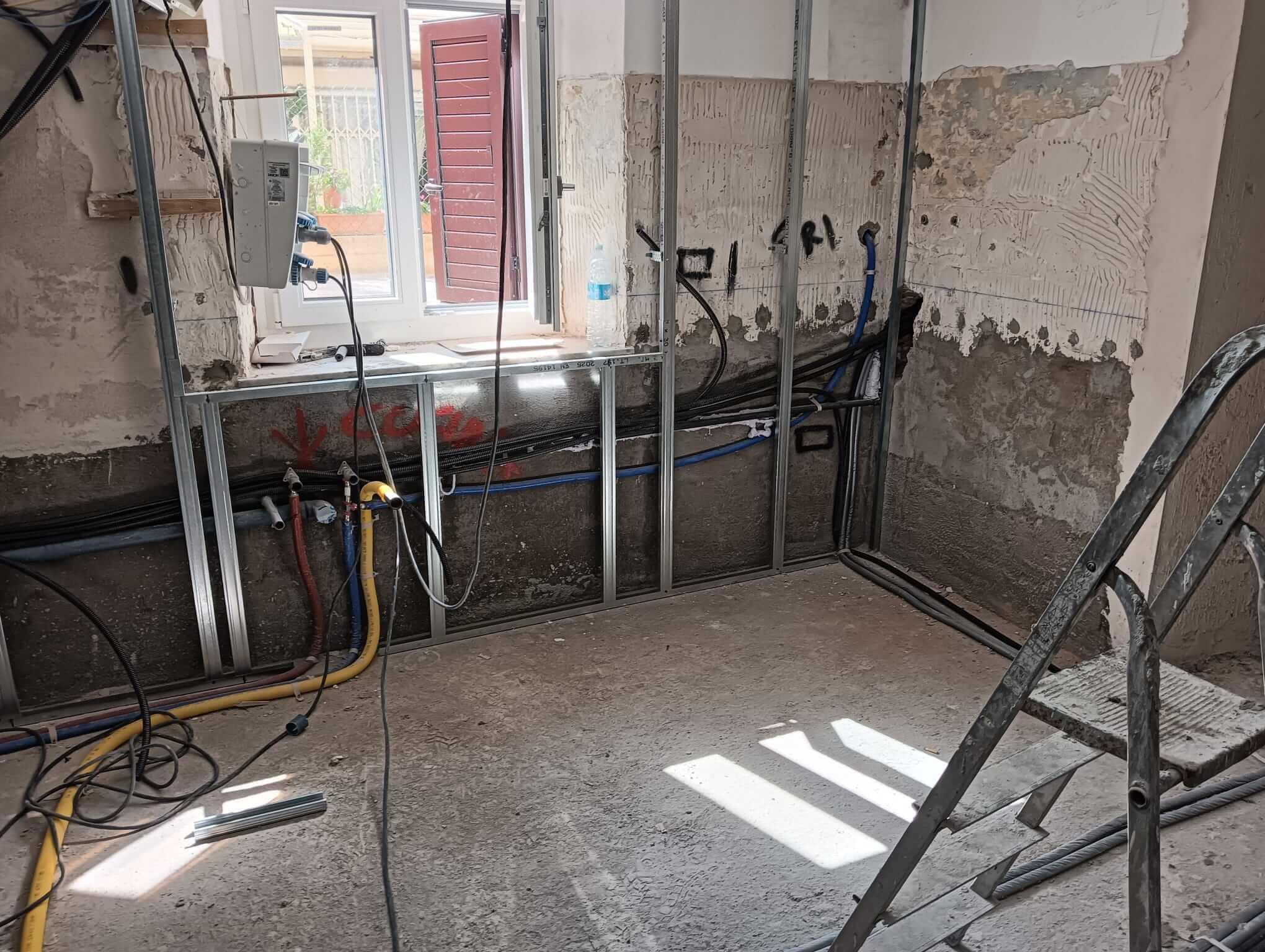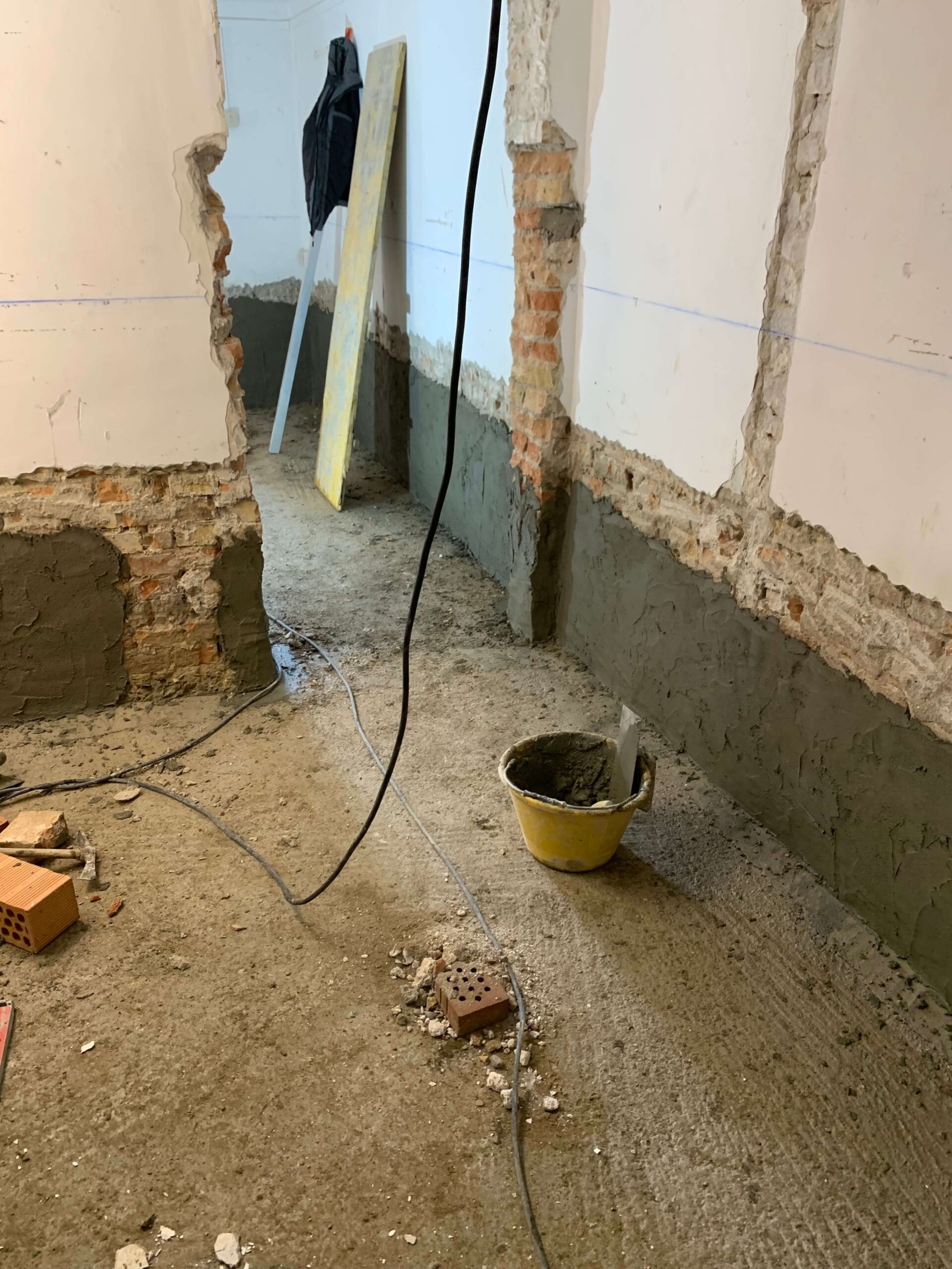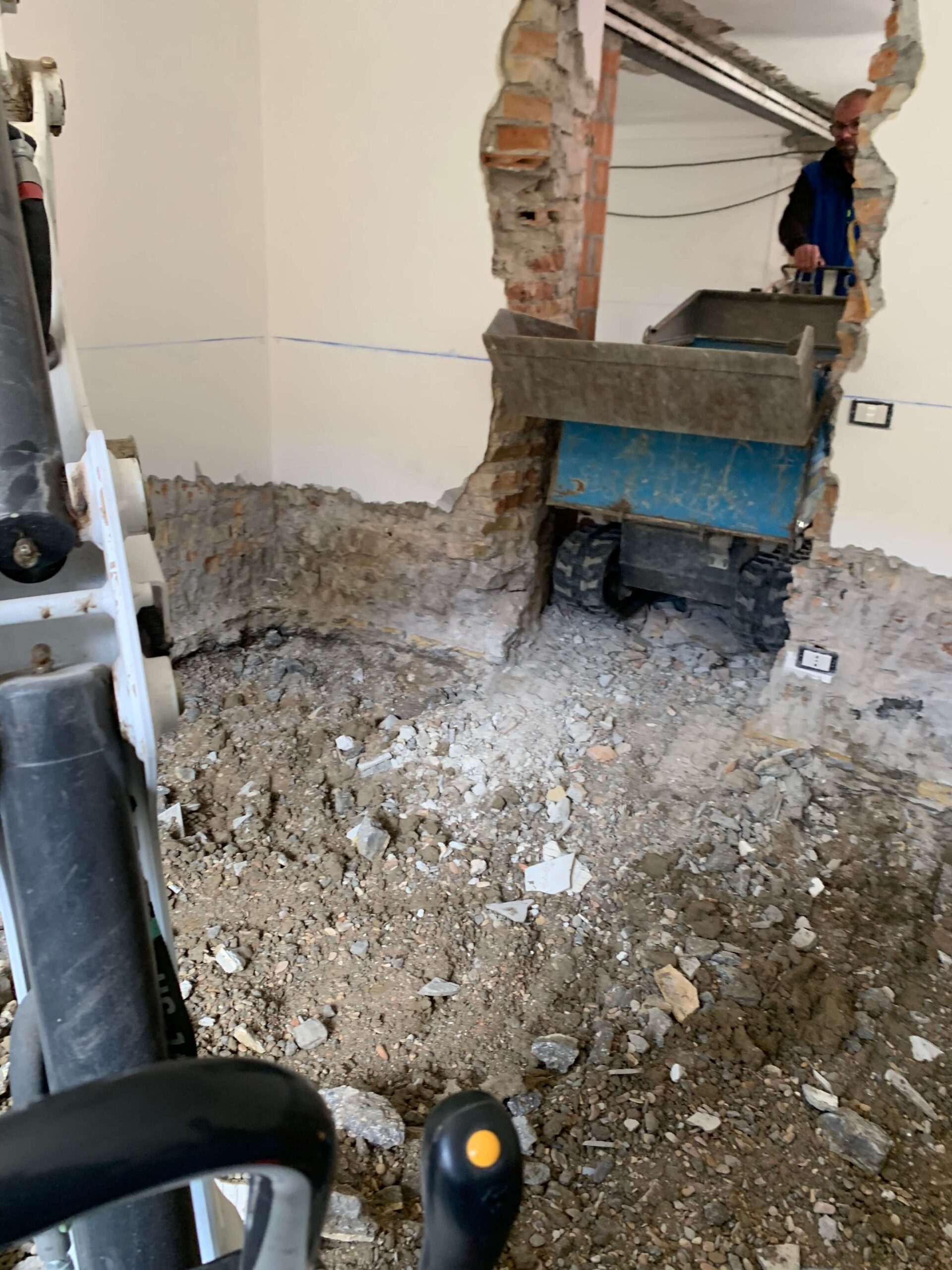 Demolizione totale dei divisori e delle pavimentazioni interne per eseguire un Sistema di impermeabilizzazione  a spinta negativa ,risolutivo per piani interrati e seminterrati che hanno problemi di inondazioni dal basso. il sistema è eseguito  con ciclo di prodotti di alta qualità che portano sicurezza ed efficacia garantita a vita.