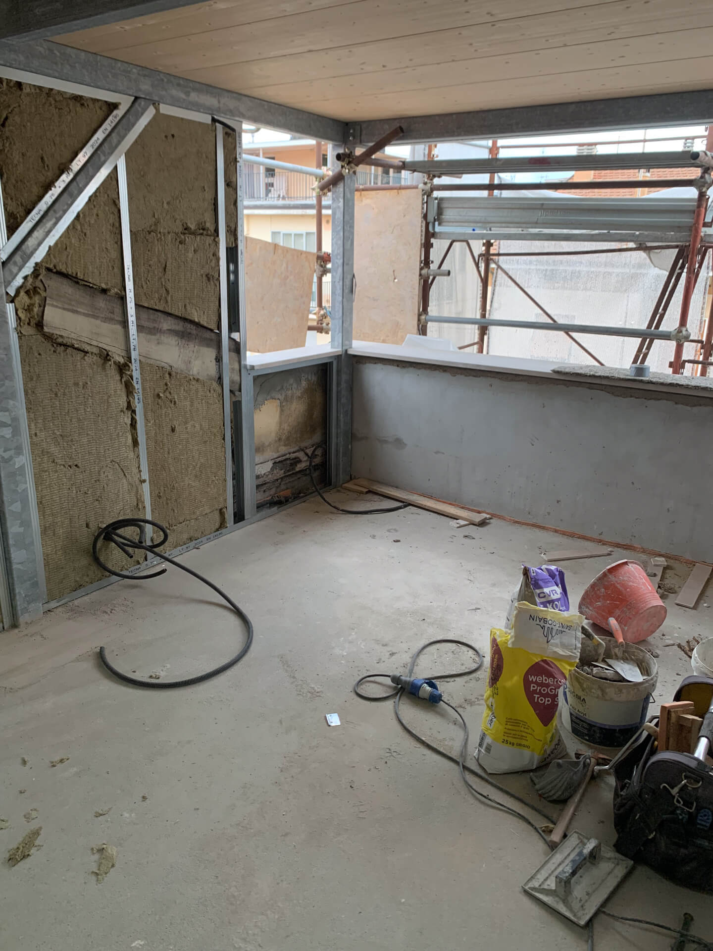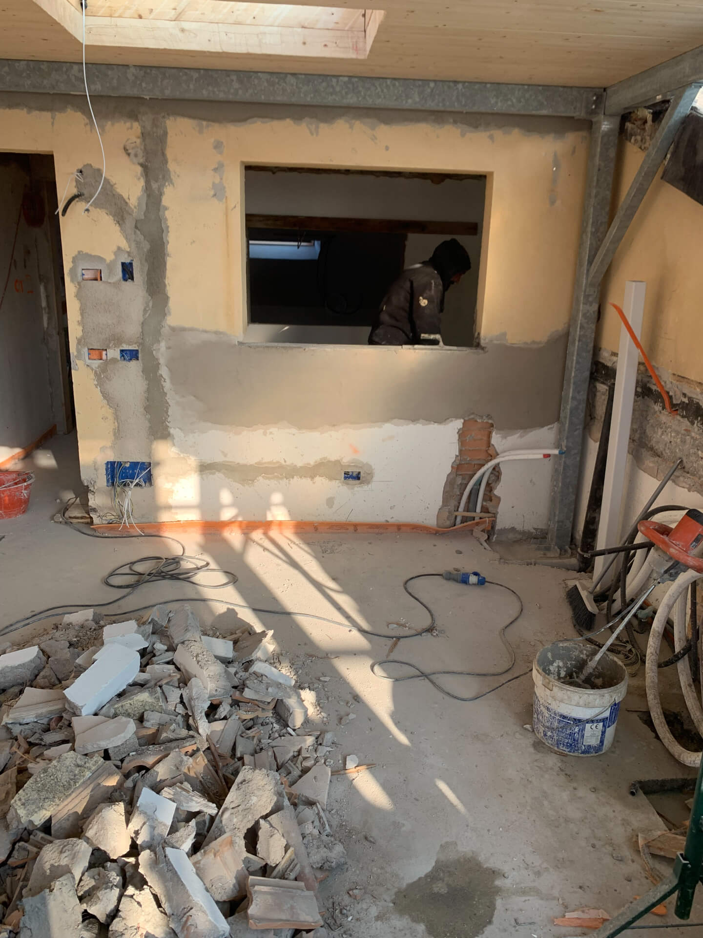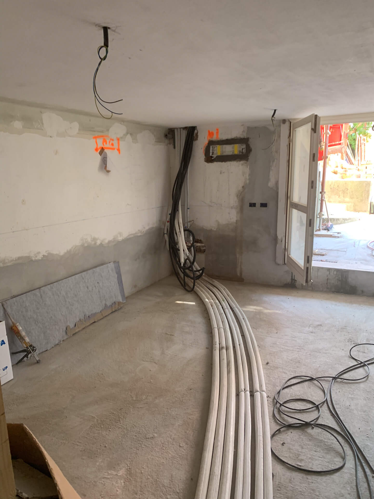Ristrutturazione totale interna ed esterna con ampliamento piano casa e impermeabilizzazione con spinta negativa del seminterrato e realizzazione di impianti mediante centrale termica con pompe di calore elettriche supportate da impianti fotovoltaici .