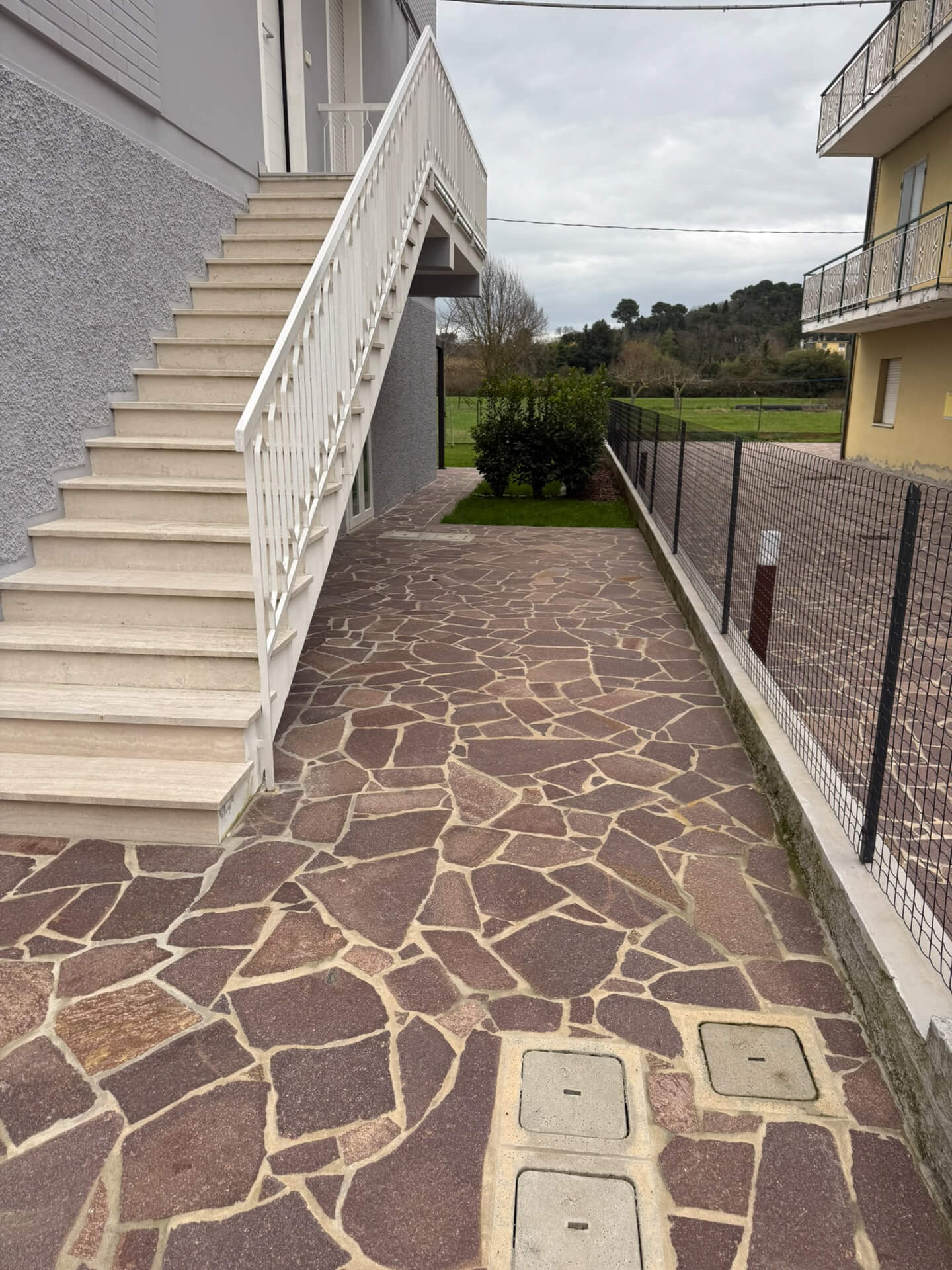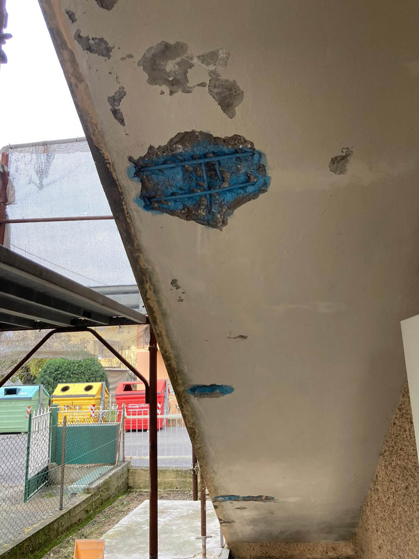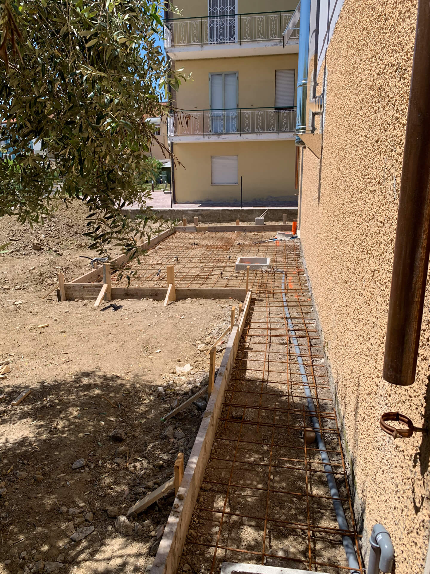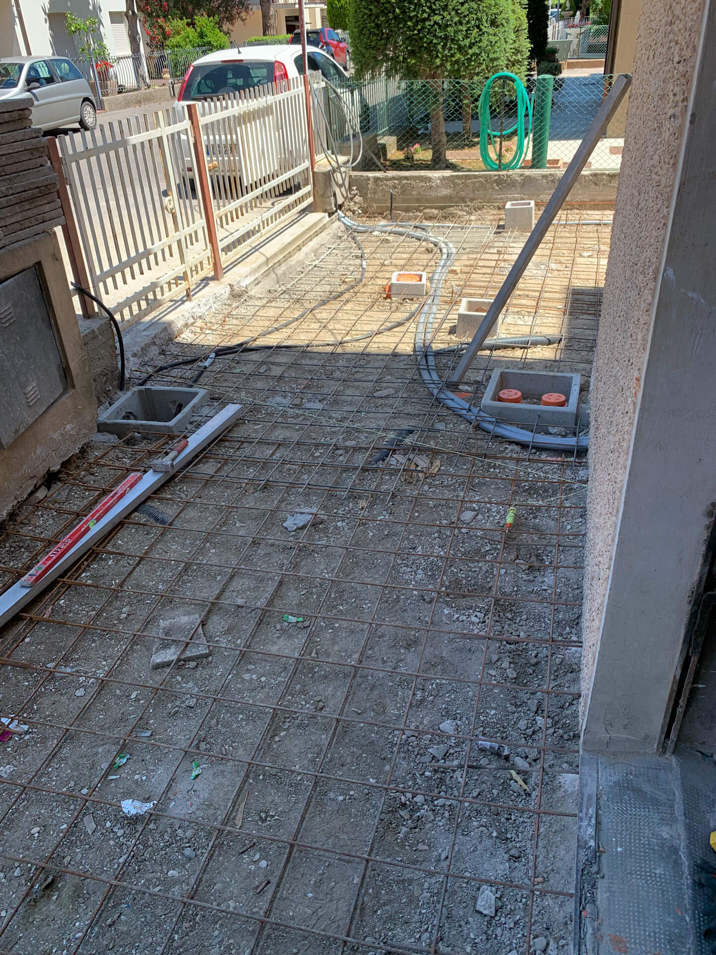 Ristrutturazione del Tetto , Facciate esterne , sistemazione delle aree pedonali e carrabili tramite la realizzazione di nuove linee Fognarie;creazione di una nuova soletta di allettamento  in Cemento Armato e la successiva posa di pavimentazione di Porfido  a scaglie.