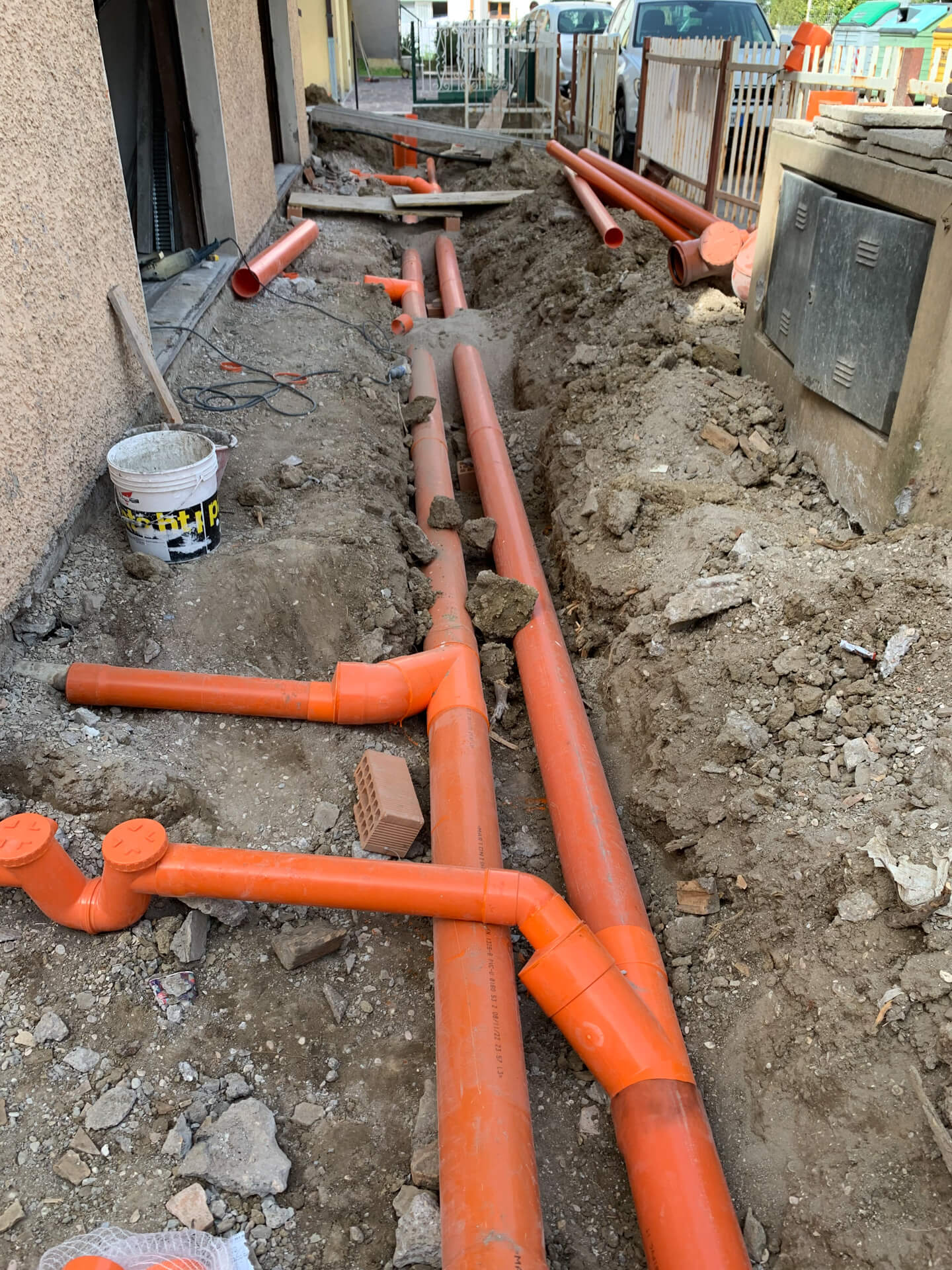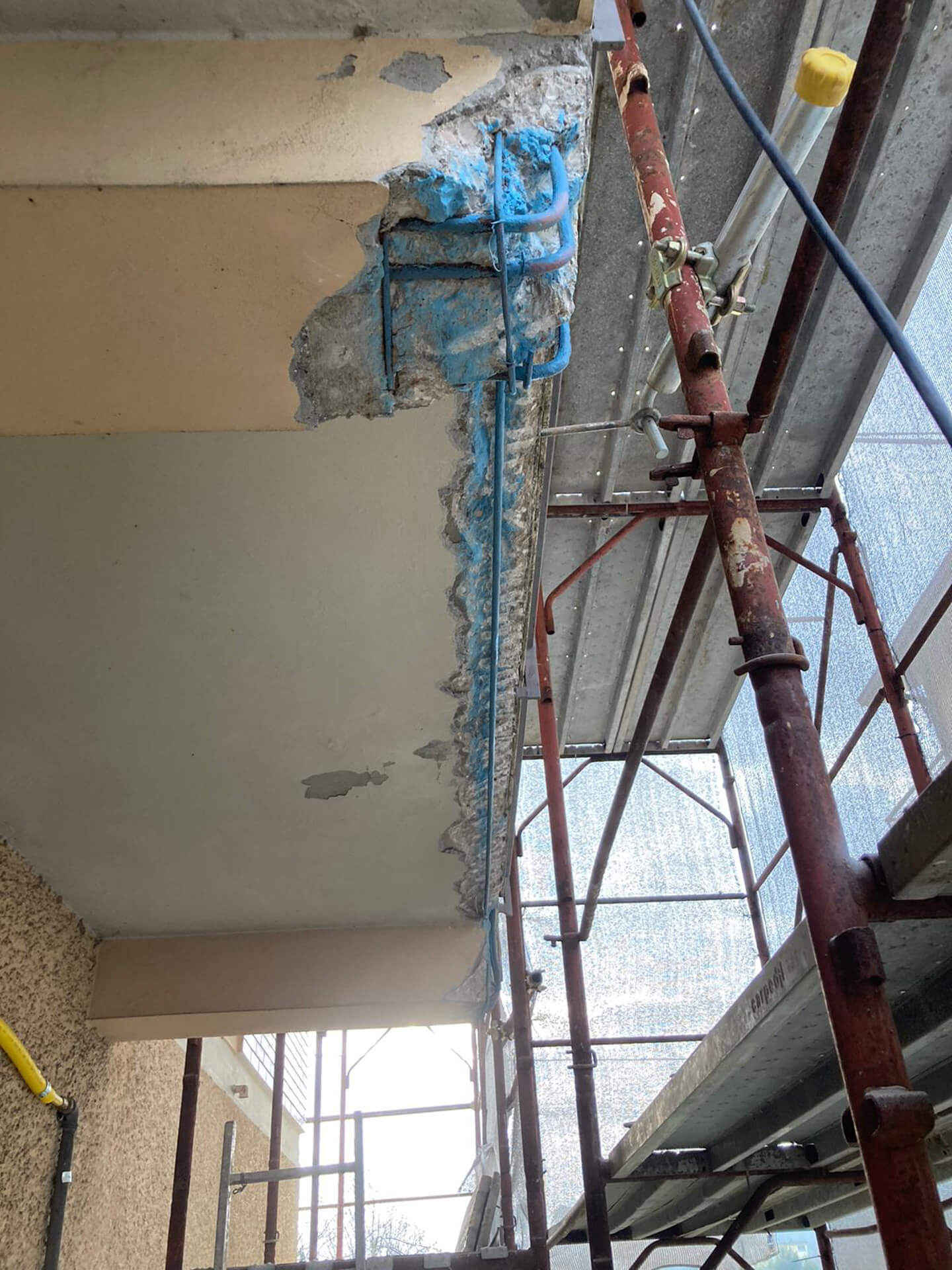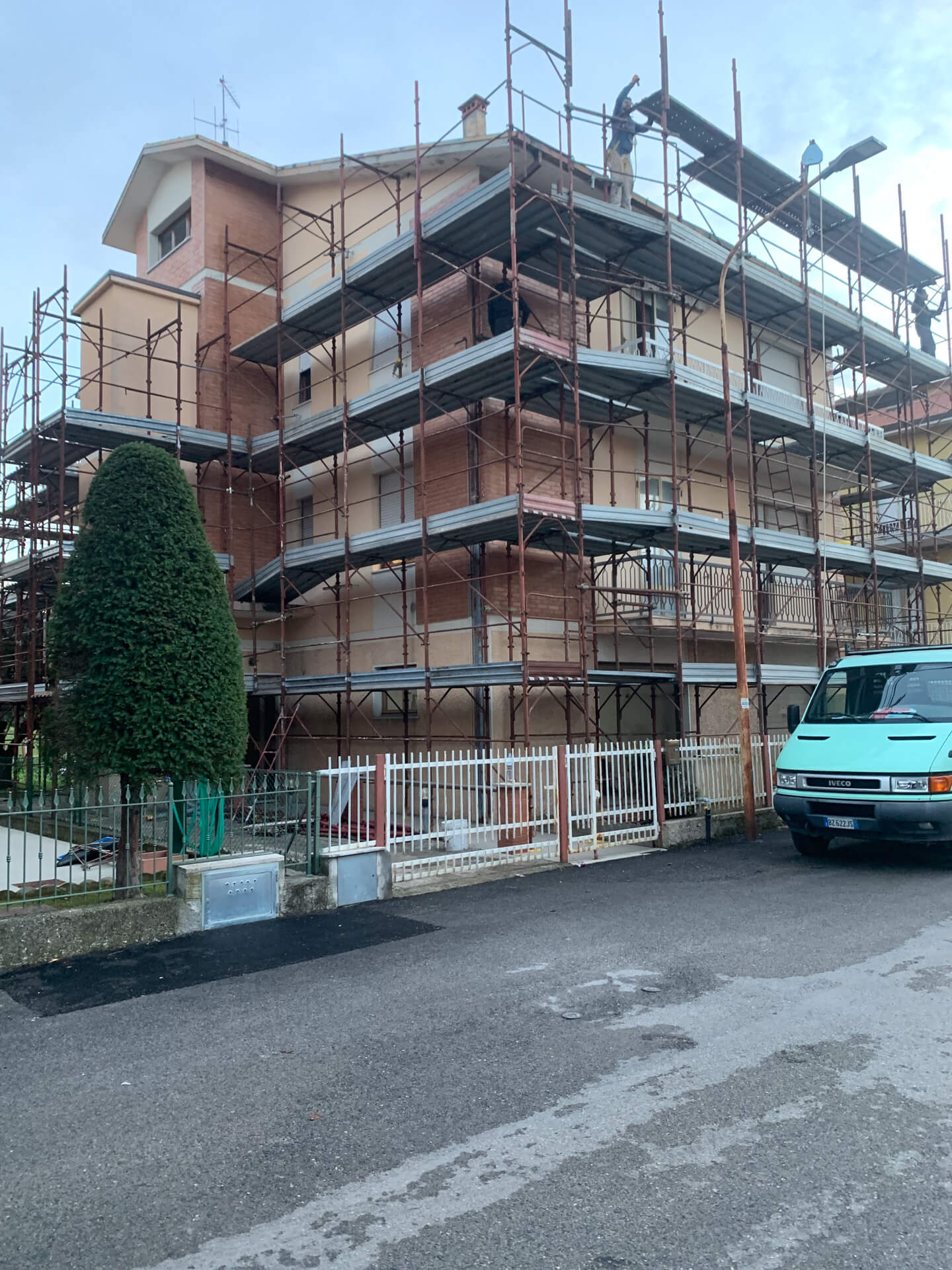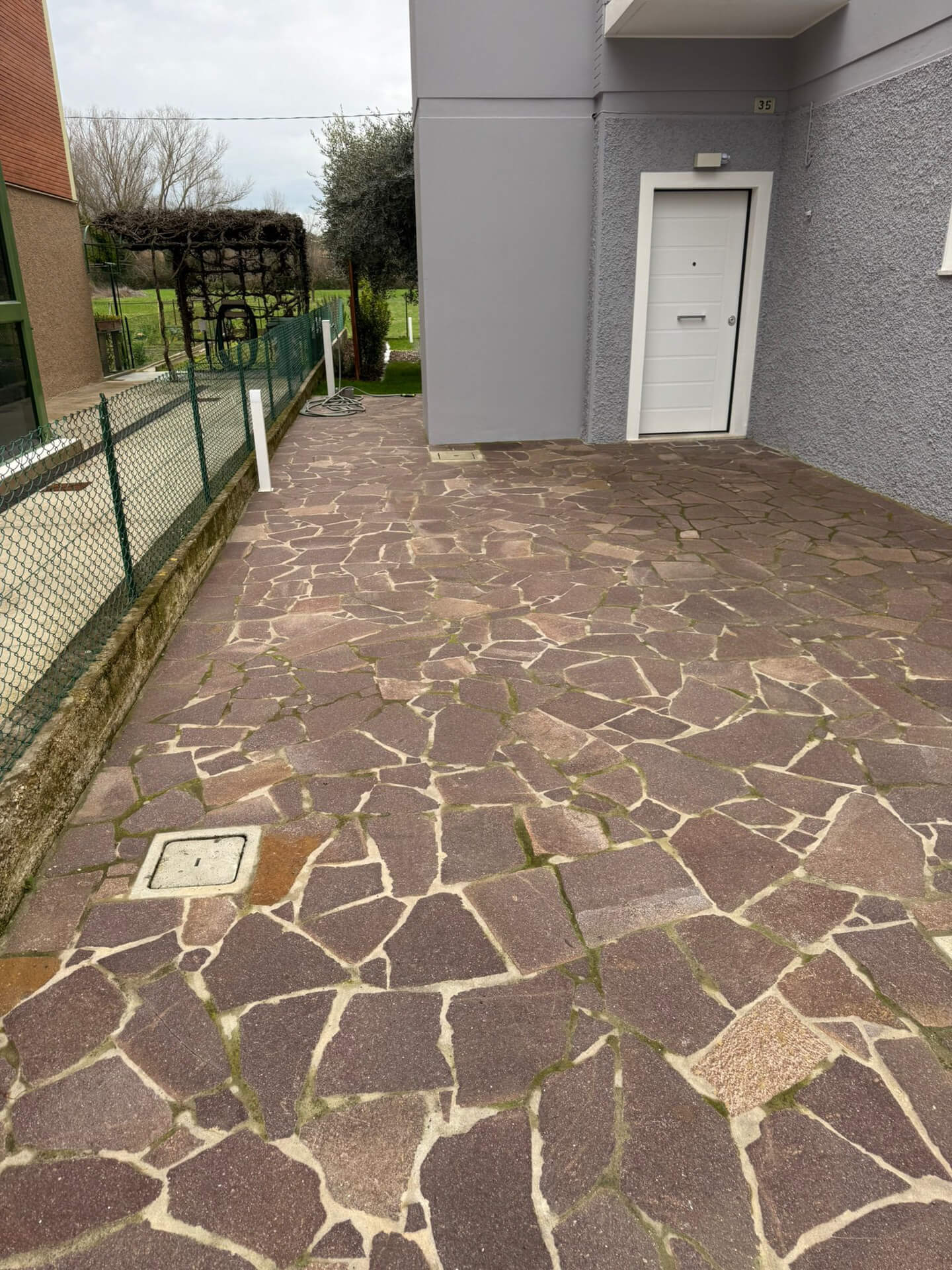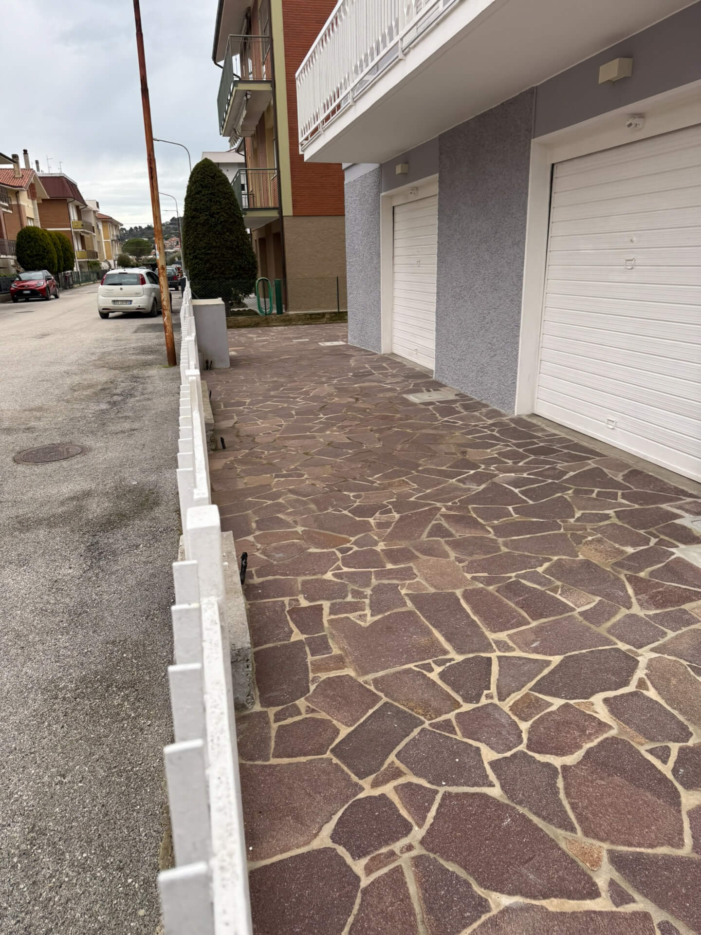 Ristrutturazione del Tetto , Facciate esterne , sistemazione delle aree pedonali e carrabili tramite la realizzazione di nuove linee Fognarie;creazione di una nuova soletta di allettamento  in Cemento Armato e la successiva posa di pavimentazione di Porfido  a scaglie.