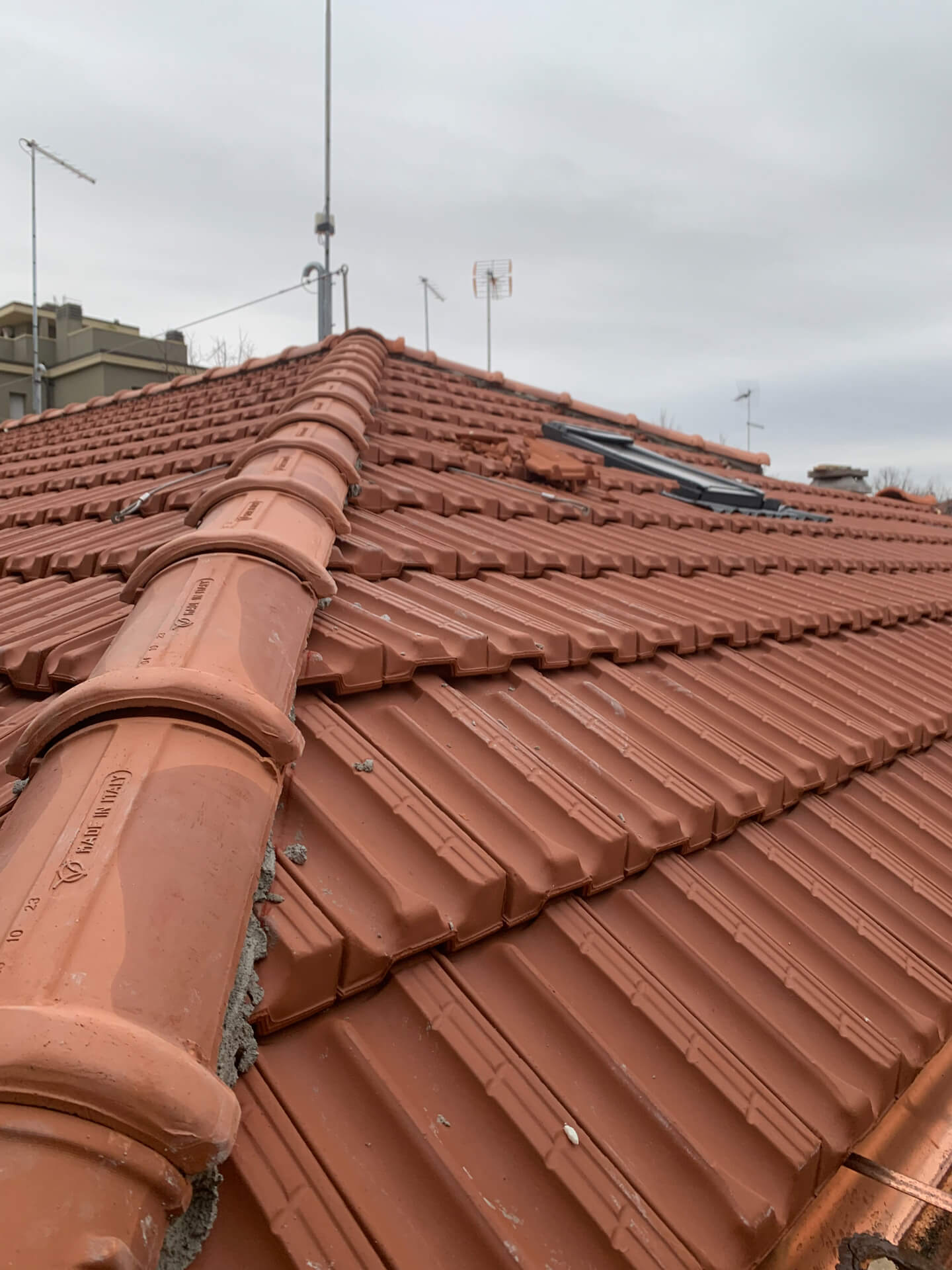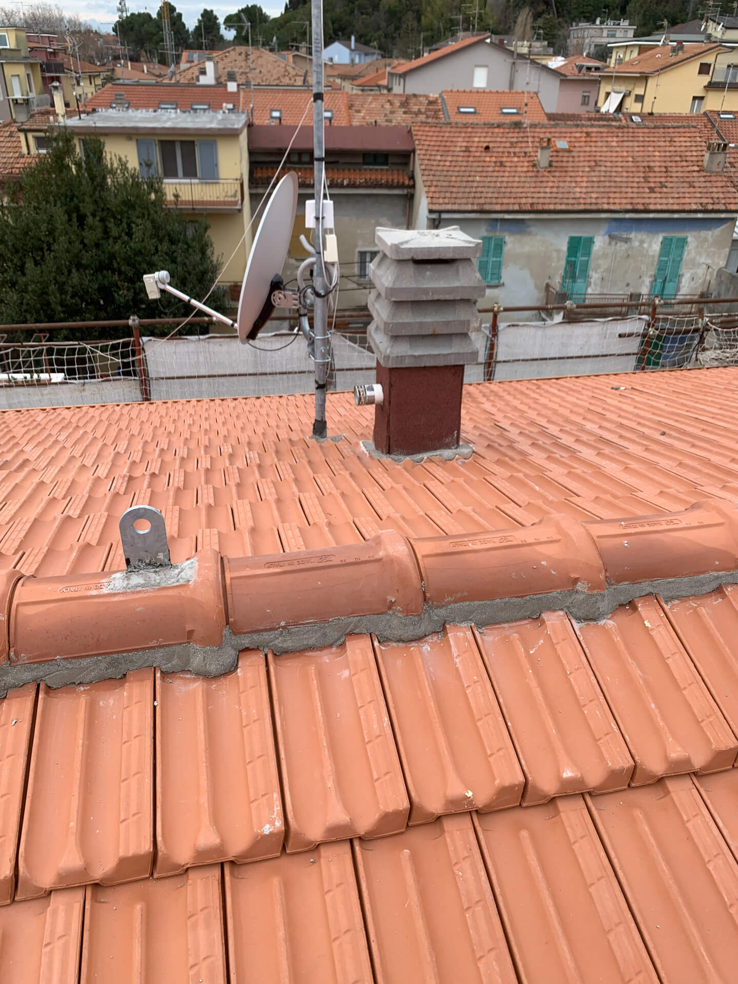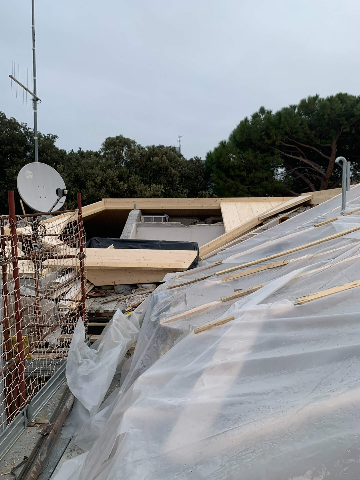 Rifacimento totale mediante il completo smantellamento della vecchia orditura in travi in legno esistenti, adeguamento strutturale mediante cordoli in Cemento Armato e travi portanti e la fornitura e posa in opera di nuovo tetto in legno lamellare completo di isolamento termico , impermeabilizzazioni bituminoso , manto in tegole marsigliesi e tutto quant’altro per dare l’opera finita.