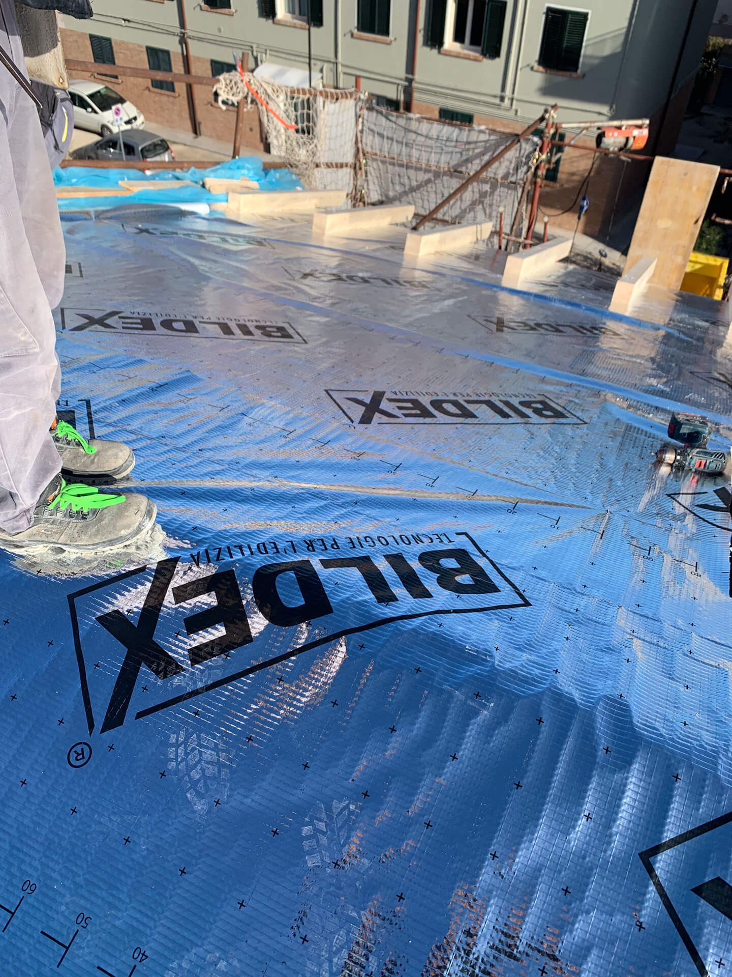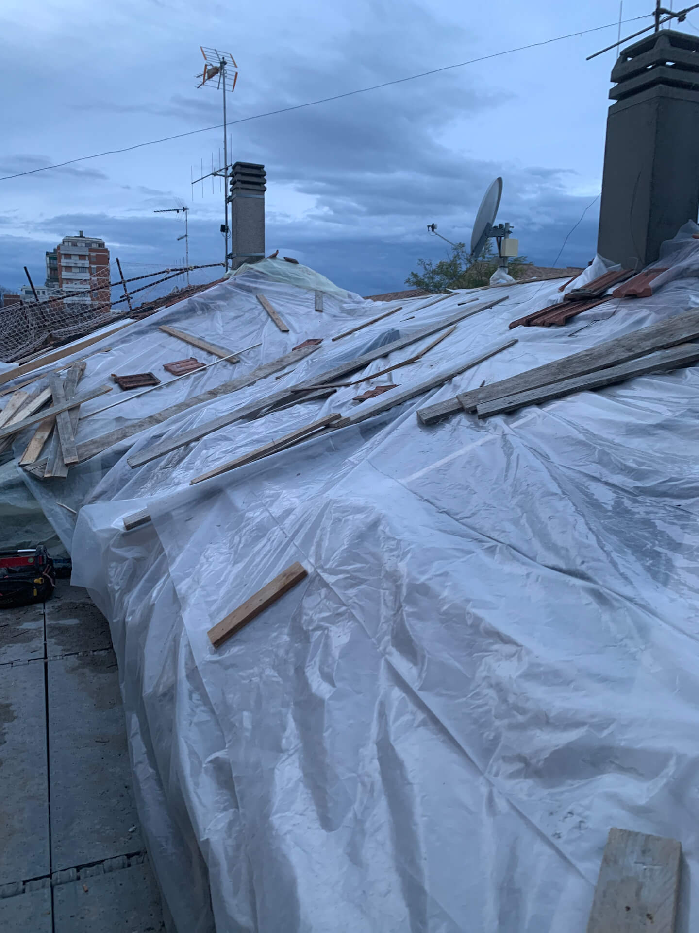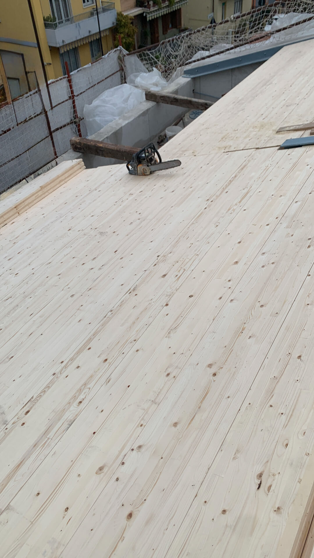 Rifacimento totale mediante il completo smantellamento della vecchia orditura in travi in legno esistenti, adeguamento strutturale mediante cordoli in Cemento Armato e travi portanti e la fornitura e posa in opera di nuovo tetto in legno lamellare completo di isolamento termico , impermeabilizzazioni bituminoso , manto in tegole marsigliesi e tutto quant’altro per dare l’opera finita.
